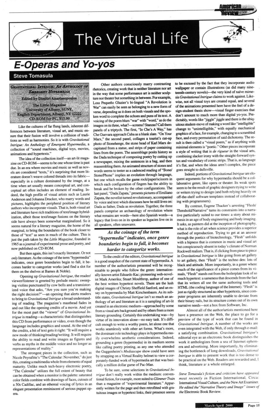 Yes, we know all about delightfully strange art happenings at iEAR at RPI, but Nicole Peyrafitte’s Experimental Cabaret — held at Tess’ Lark Tavern at 7 p.m. on the second Monday of the month — has been a marvelous boon to thinking-outside-the-box artists, and it’s decidedly more democratic. Since the monthly shows began back in November, Peyrafitte has hosted a wide variety of unclassifiable multimedia performance art — improv poetry ‘n’ dance, PowerPoint ‘n’ stand-up comedy, poetry ‘n’ live jazz, video ‘n’ DJ, whatever. You just never know what you’re going to see and hear — and that’s the beauty of it. Ex Cab is on hiatus for the summer, but Peyrafitte promises to rev things up again for a second season beginning in October.
