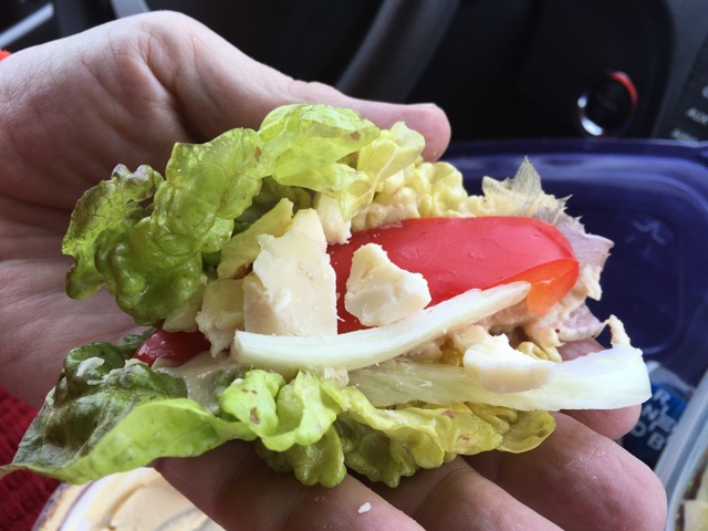 Lunch was to finish up what was left in our cooler. I made lettuce wraps with hummus, red bell pepper, fennel, cheddar — lovely!, while dinner was a brown rice bowl & a salad at the very mediocre restaurant of the hotel.